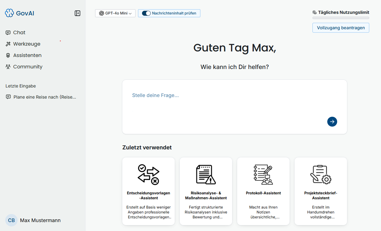 Probieren Sie jetzt GovAI unverbindlich aus: